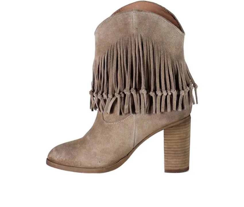 True Sky Mid-Calf Boots by Diba True effortlessly blend cowgirl flair and modern sophistication. Featuring a 3.5-inch stacked block heel, these genuine suede boots add a stylish edge to any outfit. Accented with chic fringe detailing along the shaft, the True Sky boots exude a playful, Western-inspired charm. Whether you’re headed to a concert or a night out, these captivating boots will have you turning heads with their perfect fusion of comfort and fashion.