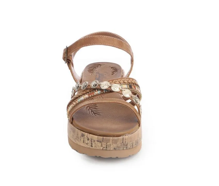 Step into statement style with the Jellypop Pierra Wedge Sandals, where every strap tells a different story. From sparkling rhinestones to intricate embellishments, each detail adds personality to this eye-catching design. Finished with a cushioned footbed and adjustable buckle, these wedges bring all-day comfort to your standout look.