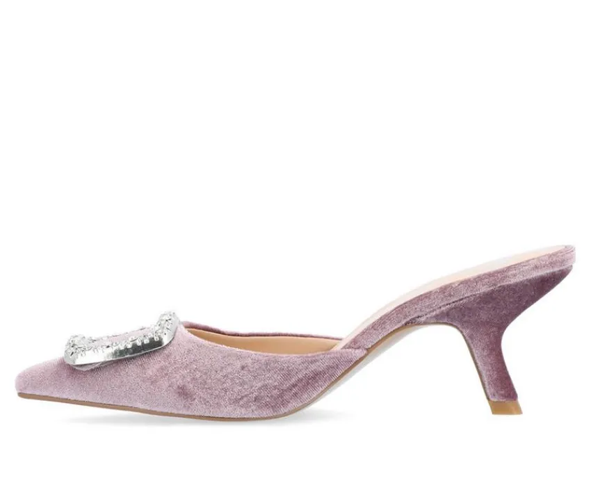For that date you have coming up, or even an event that requires you to dress up, these Rishie kitten heel shoes from Journee Collection will be the perfect touch. With their soft velvet material, gemstone accent, and pointed-toe shape, they will have your date taking a second glance. With their padded insole and easy slip-on, they make the perfect shoe for when it comes time to kick your feet back and relax at the end of the night. At Journee Collection, our pump styles will let you go from a fun night out with the girls to kicking back and relaxing at the end of the night without any trouble.