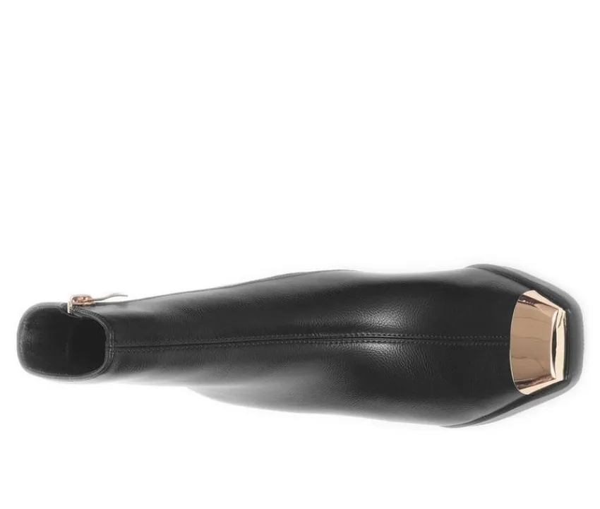 Bring bold style and standout design to your wardrobe with these chic ankle boots. Crafted with a sleek upper and a modern metallic-accented block heel, this pair makes a statement while staying comfortable for everyday wear. The inside zipper allows for quick on-and-off, while the structured silhouette and rounded toe create a polished finish. A cushioned footbed and durable outsole complete the look, giving you fashion and function in every step.
