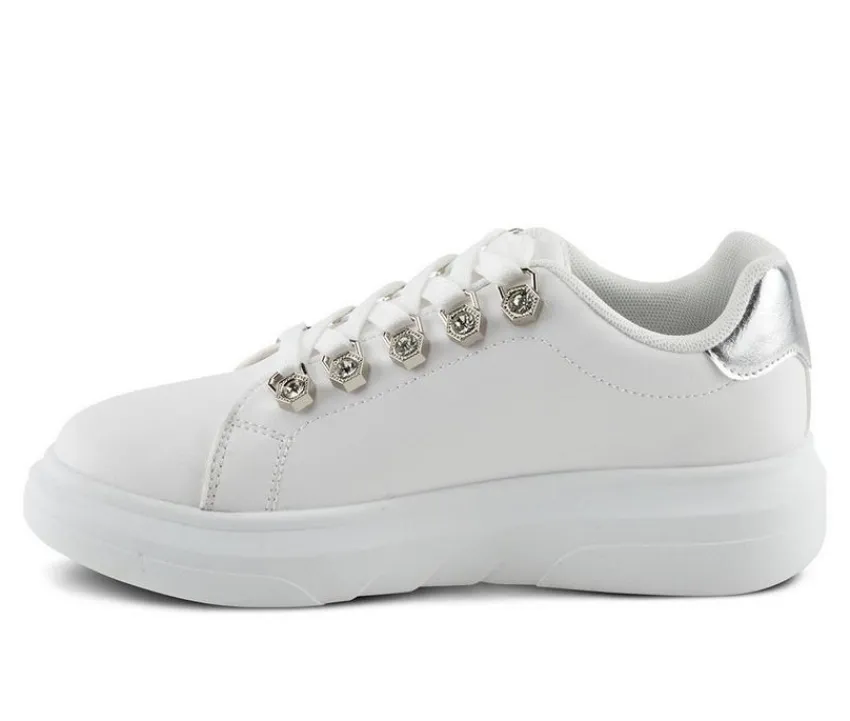 This platform sneaker brings bold energy to your casual wardrobe with its clean profile and standout sole. Featuring a smooth synthetic upper and polished metal eyelets, it offers an elevated take on classic court style. The lace-up front ensures a secure fit, while the padded collar and chunky outsole deliver all-day comfort and street-ready attitude. Perfect for pairing with jeans or joggers, this sneaker is made to move with confidence.