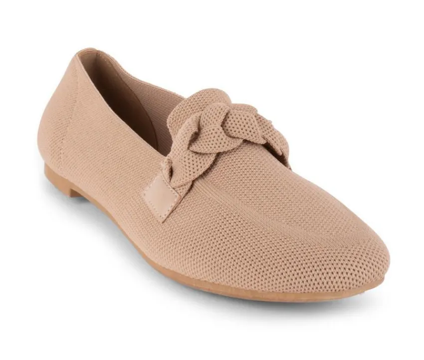 Breathable Polyester Knit Loafers with braided keeper strap detail.