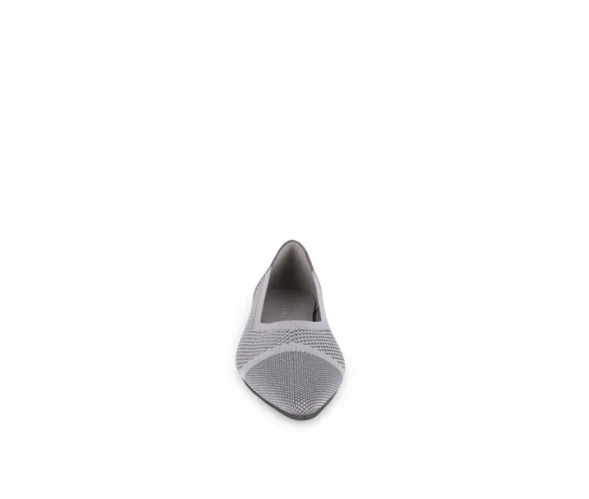 This pointy toe flat delivers timeless elegance with a breathable knit upper styled in a two-toned design. A sleek cap toe brings polished detail, while the slip-on construction makes them effortlessly wearable. Lightweight and versatile, they balance chic appeal with everyday ease.