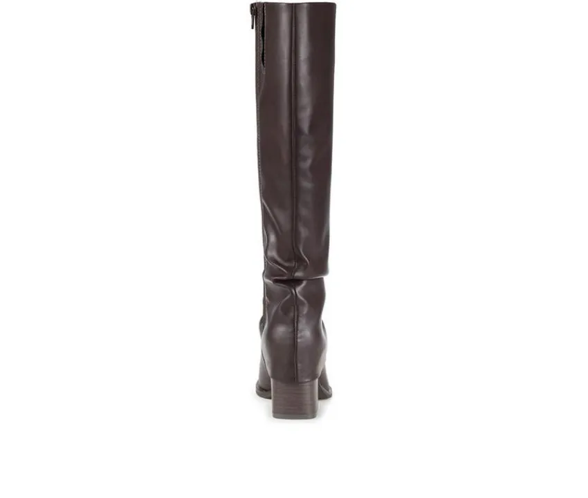 Elevate your seasonal style with this tall boot designed to turn heads and keep you comfortable. Featuring a slouched synthetic upper and a sleek block heel, it delivers a bold yet relaxed silhouette perfect for dressing up or down. A full-length inside zipper makes for easy on-and-off, while the cushioned insole ensures comfort from day to night. Whether paired with leggings or layered under a skirt, this boot brings confidence to every outfit.
