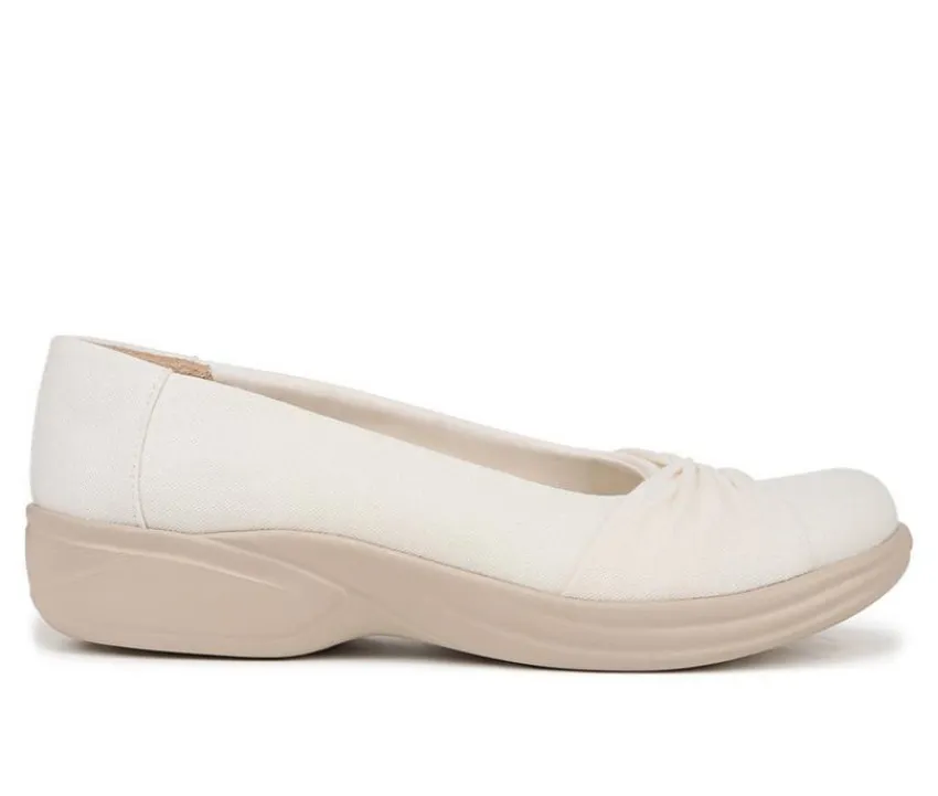 Ease into slip-ins that bring comfort to the everyday! Wear, wash, love. Stretch sparkle fabric upper with partially recycled lining and round toe. Slip-ins for easy on/off. Bzees metallic ornamentation. BLOOM™ materials: Eco-conscious algae-infused foam layer under the insole. BZEES Cloud Technology: Designed so you’ll feel weightless, energized and free. Ultra Lightweight: Step lightly with a nearly weightless feel. Dynamic Stretch Fabrics: Move freely in shoes with built-in stretch. FreeFoam™ Comfort: Low pressure insoles with maximum foot contact and cushy arch support. DreamPuff foam padding at the heel. SoCush arch support. Anti-Microbial and Odor Control technology. 1 3/8 inch heel. EVA outsole. Get Width It: Countless pairs of Bzees come in wide width shoes for women. Machine Washable: Wash on cold and air dry.