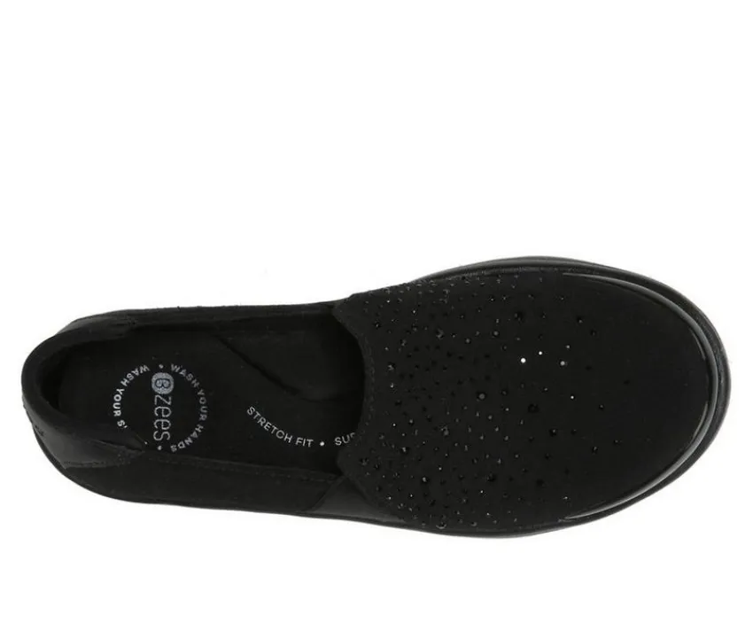 Light and bright feels so right! Sparkly slip-ons like these make us smile. Stretch mesh upper with recycled linings and rhinestone accents. Slip-on fit with stretch gore. BZEES Cloud Technology: Welcome to Cloud 9. Dynamic Stretch Uppers: Free and natural movement is finally here. Designed so you’ll feel weightless, energized and free. Anti-Microbial and Odor Control technology. Free Foam Footbeds: Your feet need beds just as much as the rest of your body does. CrazyComfy stretch collar for a comfy fit. SoCush Memory Foam arch support. Air Infused Outsoles: You’ll feel like you’re walking on, well, you get the idea. 1 inch heel. Machine Washable: Toss ‘em in the wash and you’re good to go.
