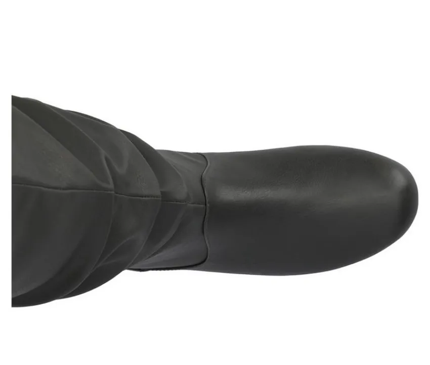 Chic and comfortable, these wide-width, wide calf knee-high boots bring effortless style to your everyday look. Designed with a soft synthetic upper and relaxed slouchy shaft, they offer a modern twist on a timeless silhouette. The wide-width fit ensures extra comfort, while the full side zipper makes for easy on and off. Complete with a low heel and cushioned interior, these boots are perfect for pairing with everything from jeans to dresses for a polished, versatile finish.