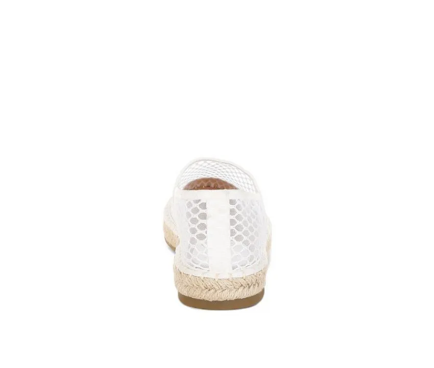 An airy espadrille flat with delicate detailing. This slip-on features a mesh crochet-style upper and classic jute-wrapped sole, making it a breathable and effortless choice for relaxed days under the sun.