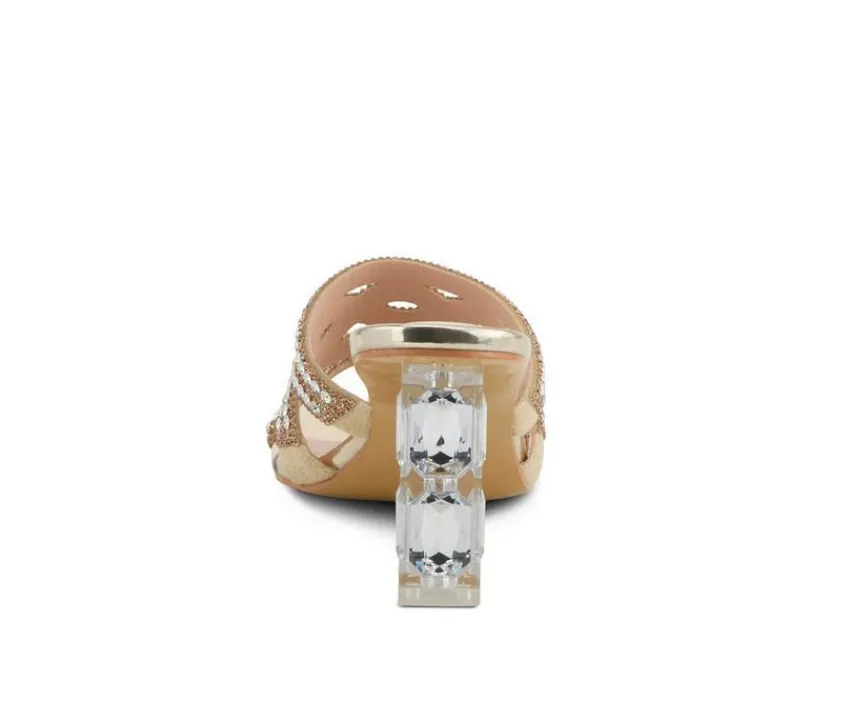 Shine bright with every step in this glamorous heeled sandal designed to steal the spotlight. Featuring sparkling rhinestone-covered straps and a bold lucite block heel with embedded crystals, it’s the perfect blend of elegance and edge. The open-toe slide design makes it easy to wear, while the cushioned footbed adds comfort to every formal occasion. Ideal for celebrations or nights out, this sandal delivers high-impact style without sacrificing ease.