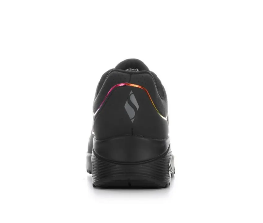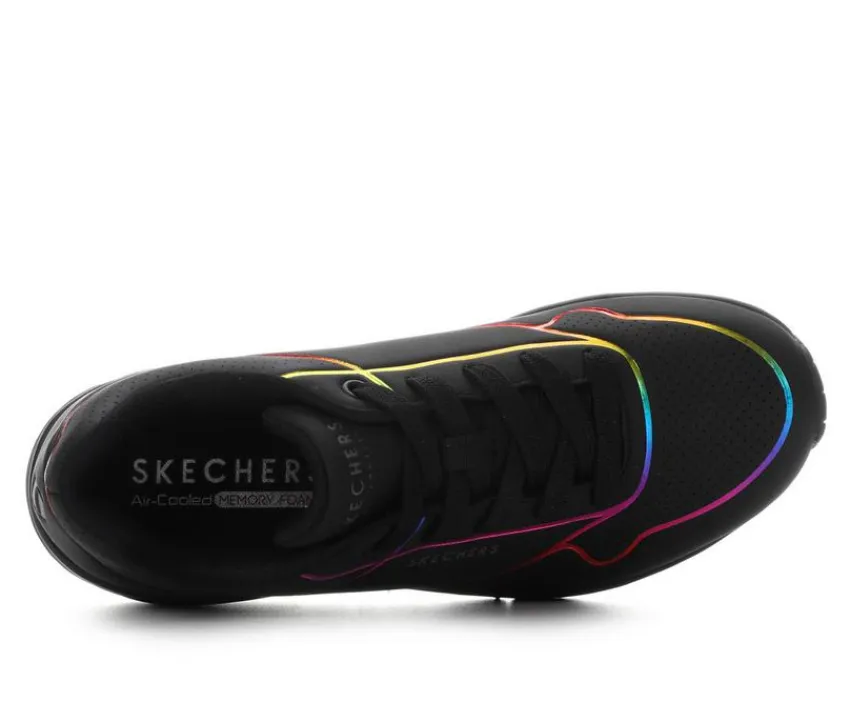 Add a splash of color to your step with the Women’s Skechers Street Uno Elc Lines Casual Sneakers, featuring a fun ombre rainbow detail that’s as vibrant as your day! With a cushioned insole and lightweight design, these sneakers keep you comfortable and stylish, whether you’re running errands or hanging out with friends. Let your shoes do the talking and brighten up every step with a pop of color and flair!