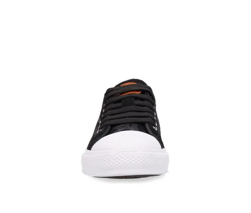 Bring edgy style to your everyday look with these low-top sneakers that blend bold texture with classic construction. Featuring a rugged canvas-like upper with zigzag embroidery and dual metal eyelets for breathability, these sneakers offer the perfect mix of street-smart detail and functional comfort. The lace-up front provides a secure fit, while the cushioned interior and vulcanized rubber sole ensure reliable comfort and traction throughout your day. Finished with a clean, timeless silhouette that works with everything from jeans to joggers.
