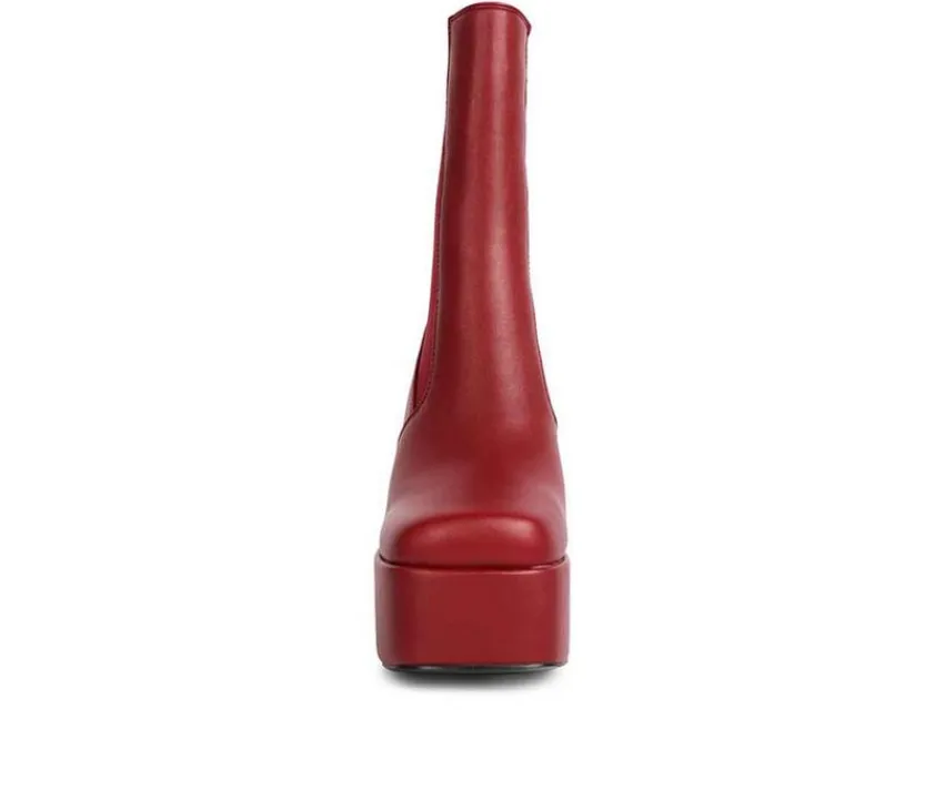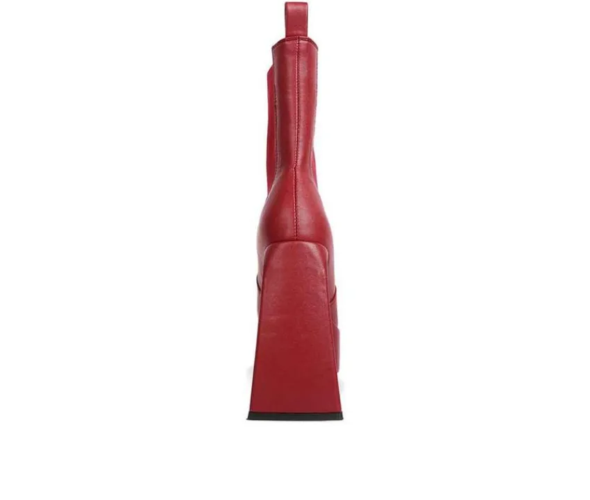 Cut Out chunky block heel in addition to thick platform makes this slip on Chelsea, a statement ankle boot for women. Comes with high quality broad elasticated gussets, this one will be worth every dollar spent. The square cut toe tip makes it look trendy; the smooth and neat construction looks chic.