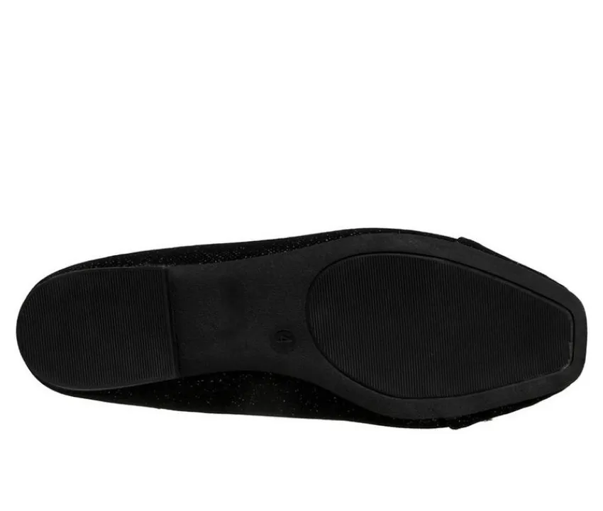 Where elegance meets sparkle for your special occasions crafted with glitter fabric, these ballerinas are designed to make you shine on the dance floor. Plus, the rhinestone-embellished bow makes them an even better pair of footwear for any party or the day when you want to dress up!