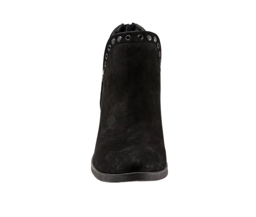 Designed with a modern edge, these ankle boots bring style and comfort to everyday wear. The slip-on construction with elastic side panels allows easy entry, while the almond-shaped toe keeps the silhouette sleek. Finished with a low stacked heel and cushioned footbed, they’re perfect for pairing with jeans, skirts, or casual dresses.