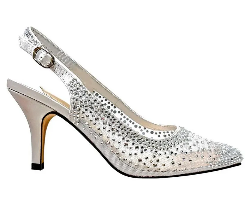 - Shimmery Fabric / Rhinestone covered Mesh upper