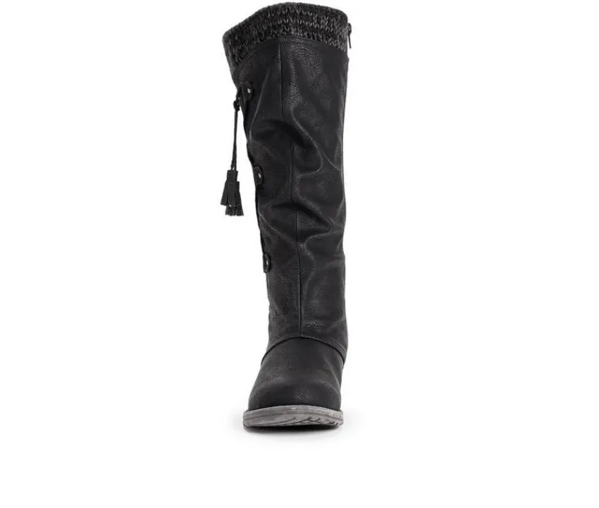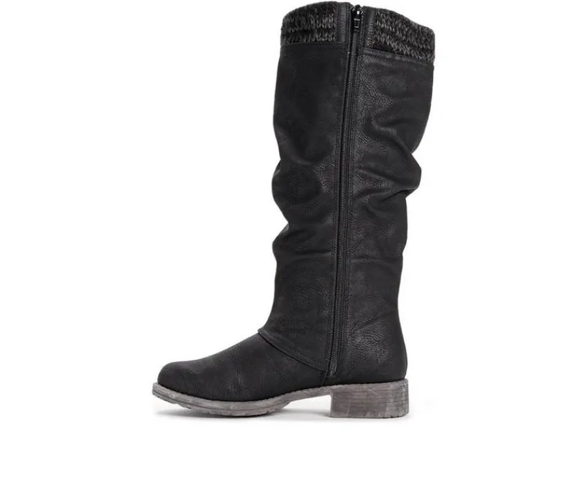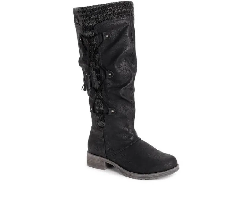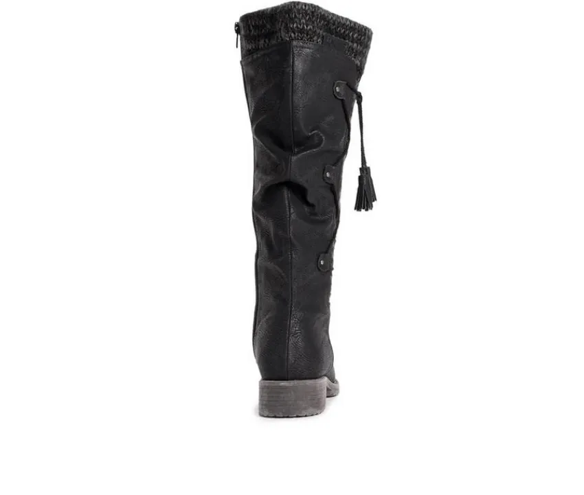 Show off your style in LUKEES by MUK LUKS® Women’s Bianca Beverly Boots. With sweet knit accents and rope detail, these knee-high boots will keep feet comfortable all day with memory foam insoles. Wipe with a damp cloth to clean, no bleach, lay flat to dry. Imported. Indoor/Outdoor Sole. Ultra soft Muk Luxe® Lining. 100% Polyester Faux Fur Insole.100% Polyurethane Upper.100% Acrylic Knit. 1.30” Block Heel. Water Resistant. Multiple color options available. Women’s Sizes 6-11.
