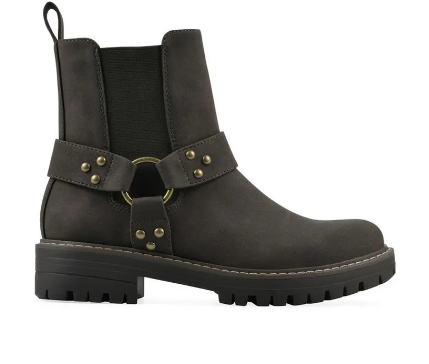 This Chelsea-inspired bootie delivers rugged style with modern updates. Featuring a harness strap detail, stretch gore panels, and a convenient inside zipper, it offers both a secure fit and easy wear. A cushioned insole provides everyday comfort, while the block heel ensures a stable lift. Built for versatility, this boot transitions seamlessly from casual looks to dressed-up outfits.