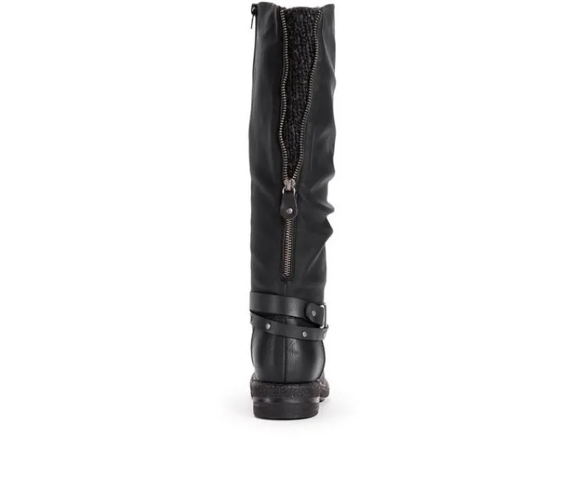 LUKEES by MUK LUKS® Women’s Logger Victoria Boots are the perfect fall weather stable. These tall water-resistant boots let you mix up your style with sweet knit accents and buckle detail. Wipe with a damp cloth to clean, no bleach, lay flat to dry. Imported. Durable TPR Sole. 100% Polyester Insole. 100% Polyurethane Upper. 100% Polyester Lining.Water Resistant. Memory Foam Insole. Multiple Color Options. Women’s Whole Sizes 6-11.