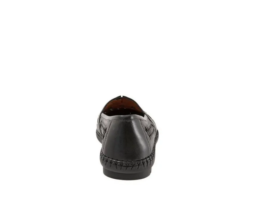 A casual slip on shoe with a removable footbed and woven details for a bohemian style.