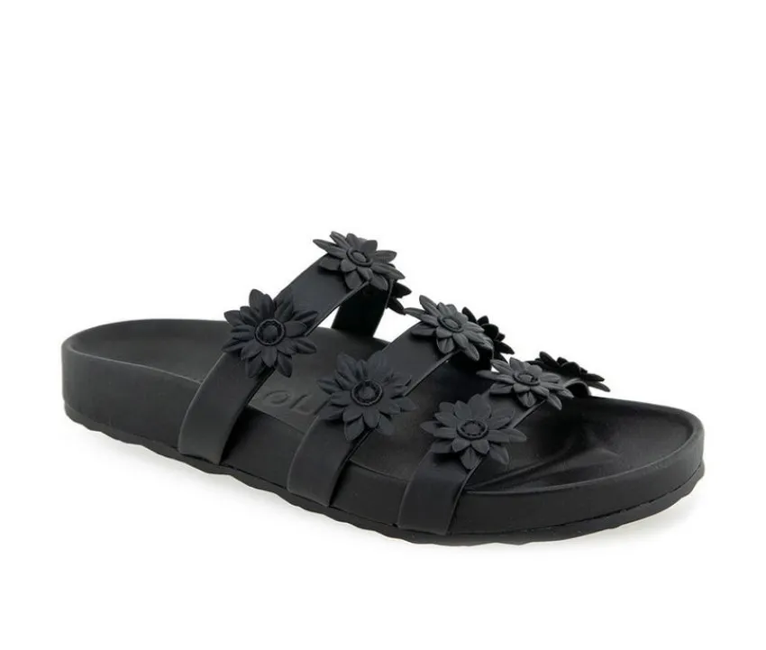 Aerosoles Women’s LEFLOR Flatform Slide Sandal combines style and comfort. The Diamond Flex Outsole offers grip, while the dual-density footbed provides arch support.