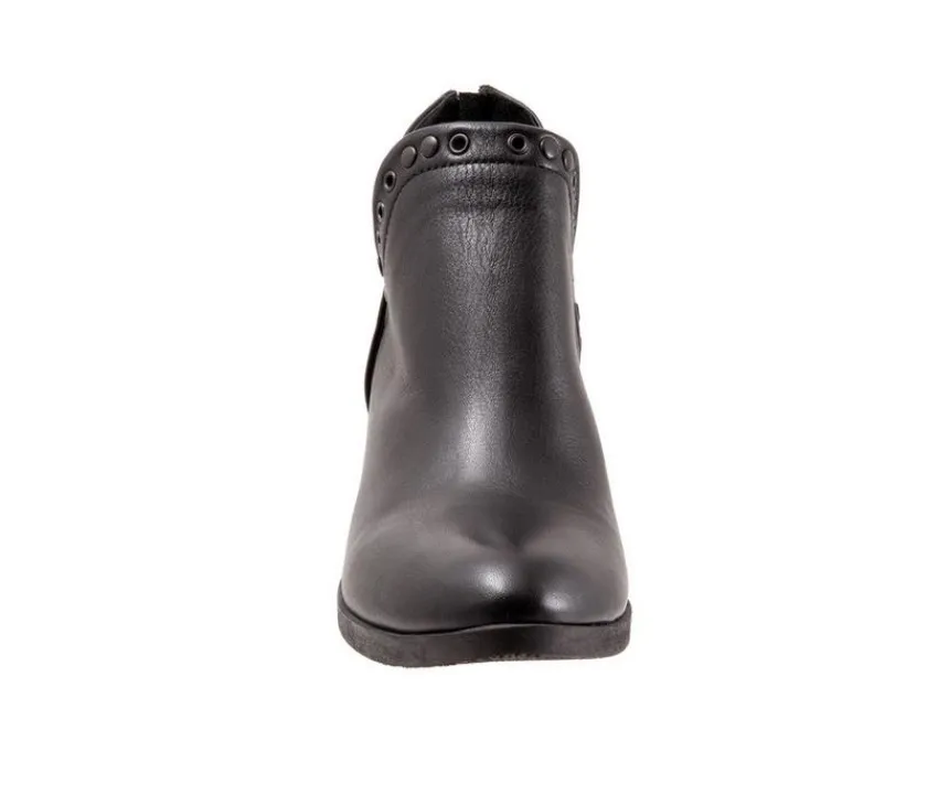 Designed with a modern edge, these ankle boots bring style and comfort to everyday wear. The slip-on construction with elastic side panels allows easy entry, while the almond-shaped toe keeps the silhouette sleek. Finished with a low stacked heel and cushioned footbed, they’re perfect for pairing with jeans, skirts, or casual dresses.