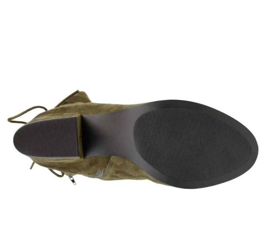 Change it up with the Leeda boot by Journee Collection. This adorable heeled boot features a lace-up detail in the back with a bow to finish it off. There is also a stretch gore on the side as needed. You�ll look fabulous in this beautiful faux suede heeled boot.