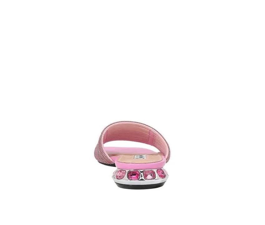 Add a pop of texture and sparkle to your warm-weather wardrobe with these standout slip-on sandals. The wide, woven upper shimmers with glittery detail, bringing playful glam to your look while keeping things breezy. A sculpted low heel wrapped in rhinestones adds eye-catching charm with every step. With an open square toe and easy-on design, these sandals strike the perfect balance of fashion and convenience for sunny days and stylish nights.