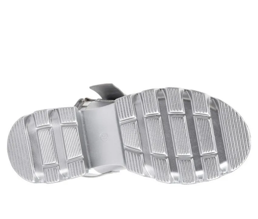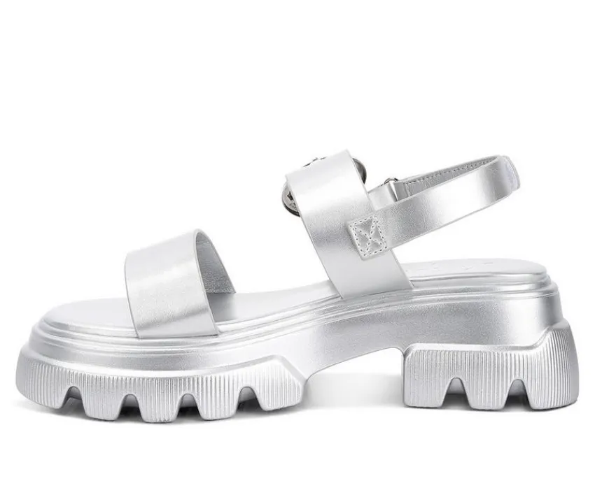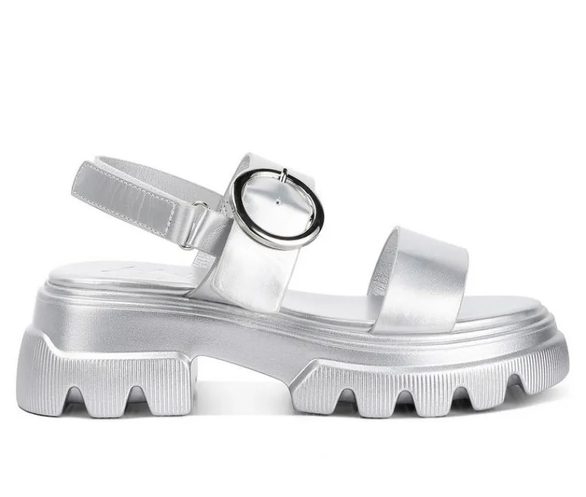 The chunky sandals are perfect when you’re looking for comfort but also style. The lug sole gives the sandals a rugged look while the metallic exterior gives the shoe a glamorous touch.