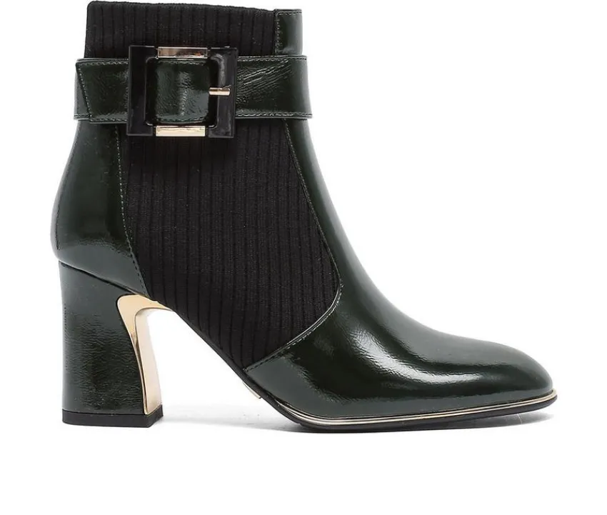 Chic and bold, these ankle boots stand out with polished details and a versatile silhouette. The man-made upper is styled with a rounded toe and accented by a decorative ankle strap and buckle. A block heel adds stylish lift, while the short shaft and inside zipper make them easy to wear day or night.