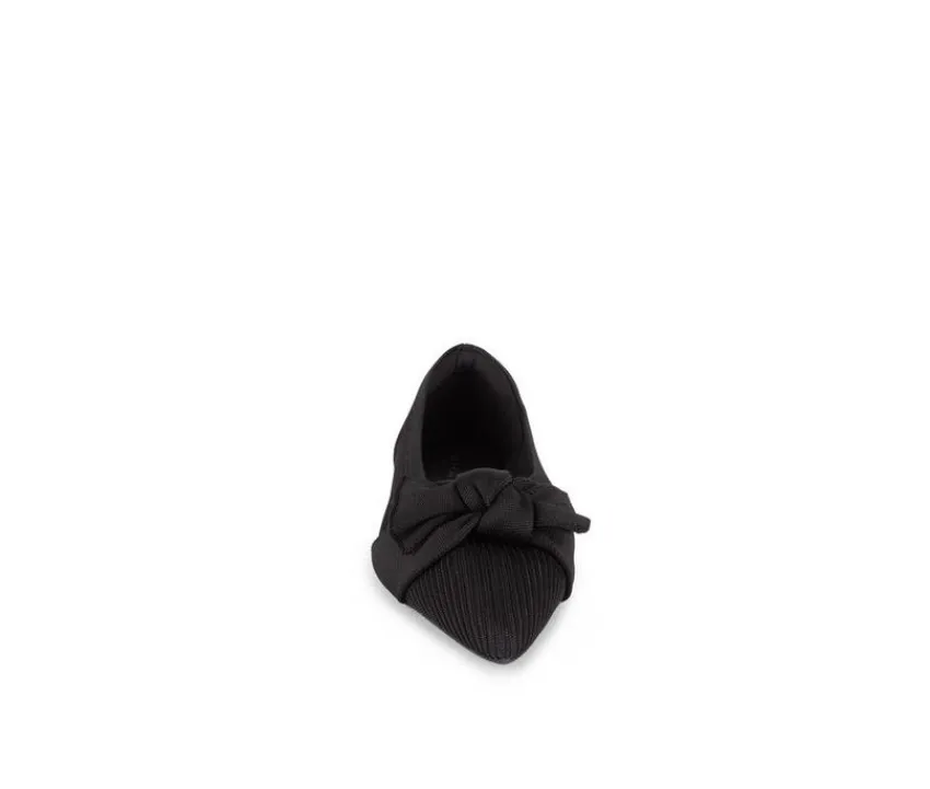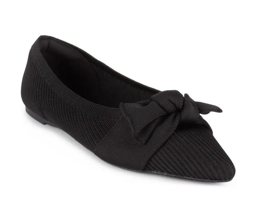 This stylish pointy toe flat features a rib knit upper enhanced with a delicate bow detail. Its slip-on design ensures all-day convenience, while the lightweight build offers effortless comfort. A refined yet playful option, these flats bring personality to any outfit.