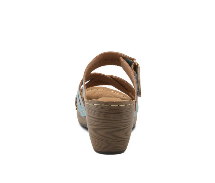Bring comfort and charm together with this easygoing sandal designed for everyday wear. The open-toe slip-on features wide cross straps with subtle laser-cut accents, offering breathable style and a soft feel across the foot. A contoured footbed and mid-height wedge heel provide support and a flattering lift, making it a go-to option for casual days out. With its wood-look sole and cushioned design, it’s both stylish and supportive from morning to night.