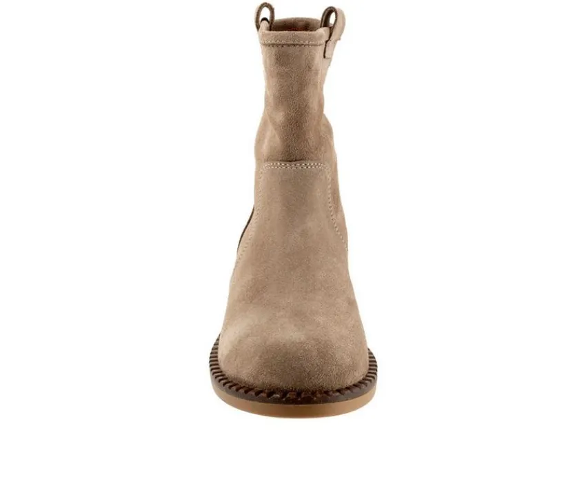 The Olina is a casual pull-on suede boot made for all day comfort and style with an attractive leather welt and rubber sole.