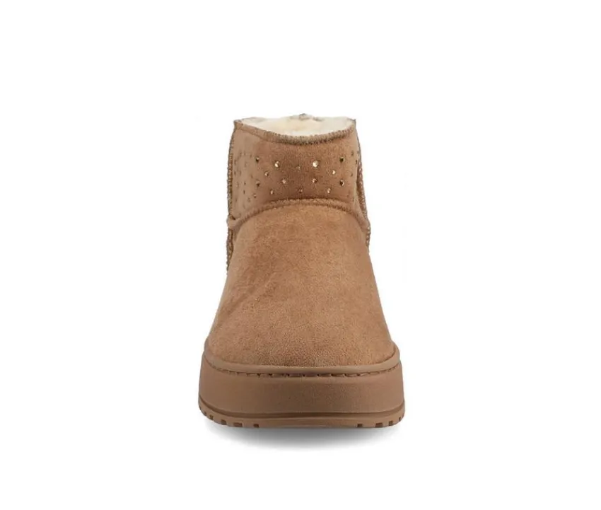 Cozy meets chic in these quilted bootie slippers designed for ultimate comfort and style. The soft synthetic upper is accented with subtle stud detailing and quilted stitching for a fashionable touch, while the plush faux-fur lining keeps feet warm and comfortable. A cushioned insole and durable outsole make them perfect for lounging indoors or stepping out for quick errands.