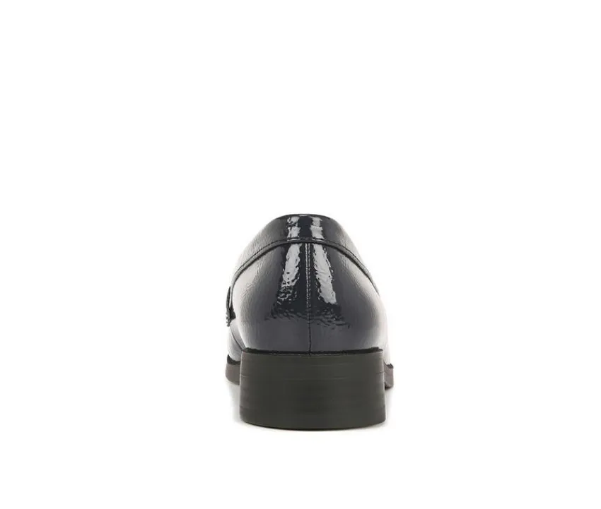 Classic moc loafers with modern flair. These womens slip on shoes always look chic. Faux leather or patent upper with a round toe, slip-on fit, and strap detail. Toe box, heel counter, and linings partially crafted with recycled materials. Soft System® comfort package provides all-day support, flex, and cushioning. Active Arch® contoured insole with extra arch support and cushioning. Traction sole provides you with extra stability. Just Right Height 1.125 inch block heel.
