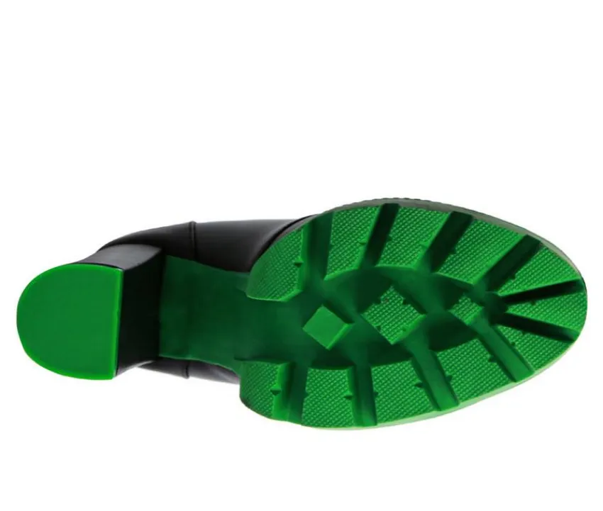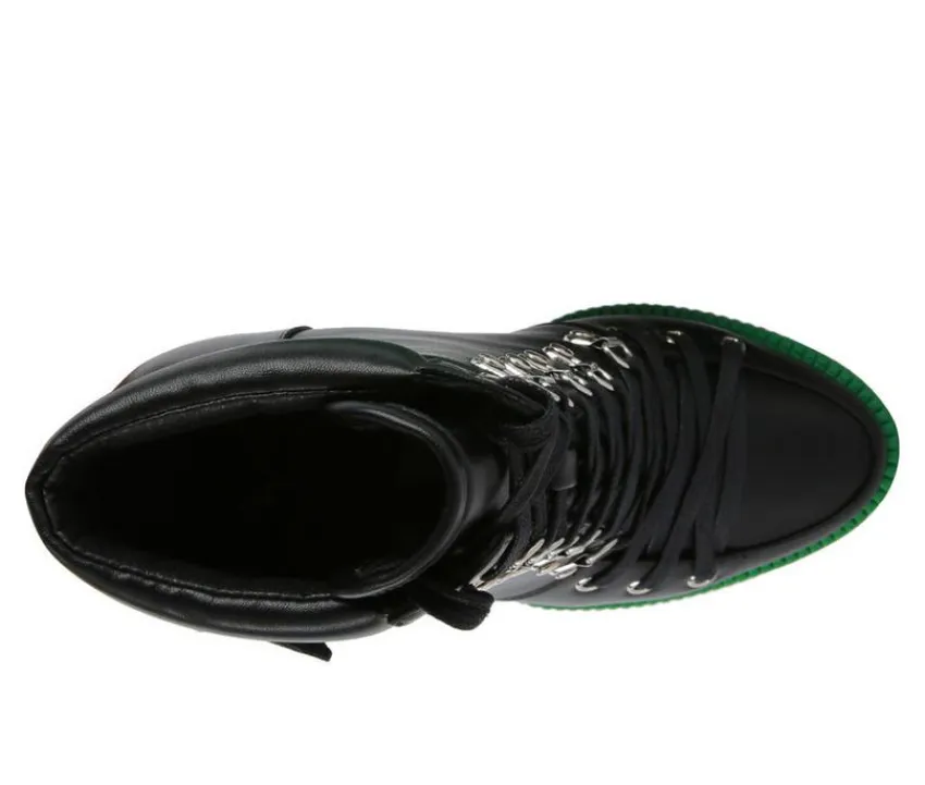 Contrast color highlight Cushion Collared White Ankle Boot with lace-up detail. The colored lug sole platform adds to the look. It has a pointed closed toe which makes it look sharp. The buckle shows at the back make it chic!