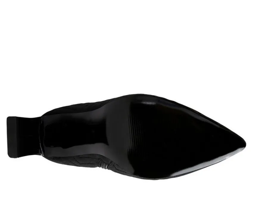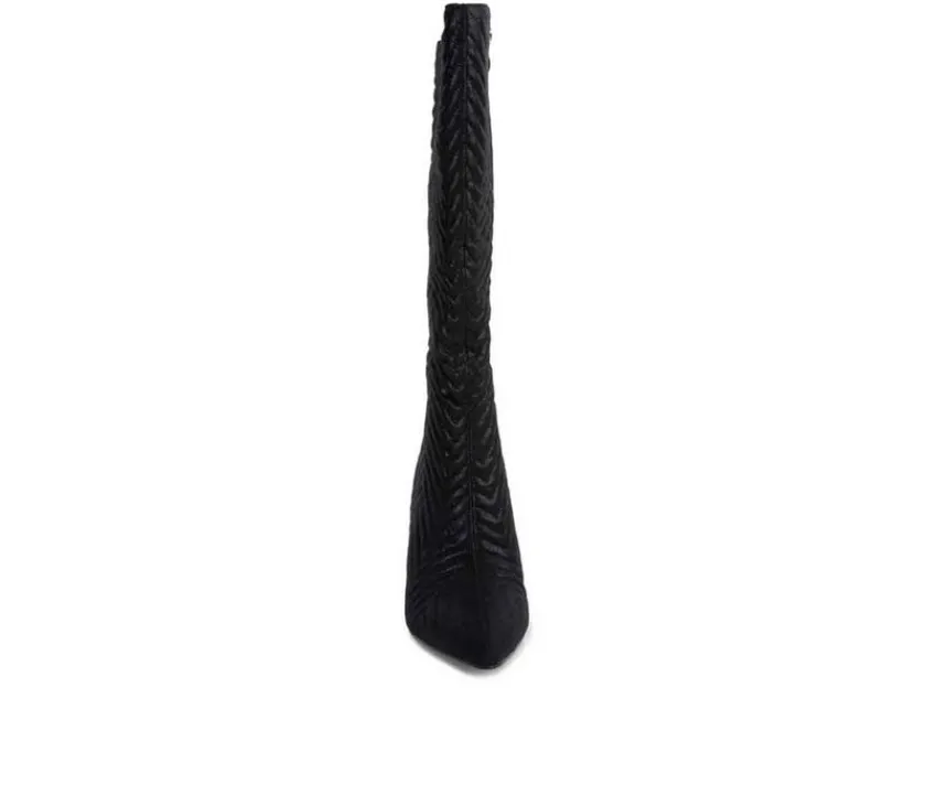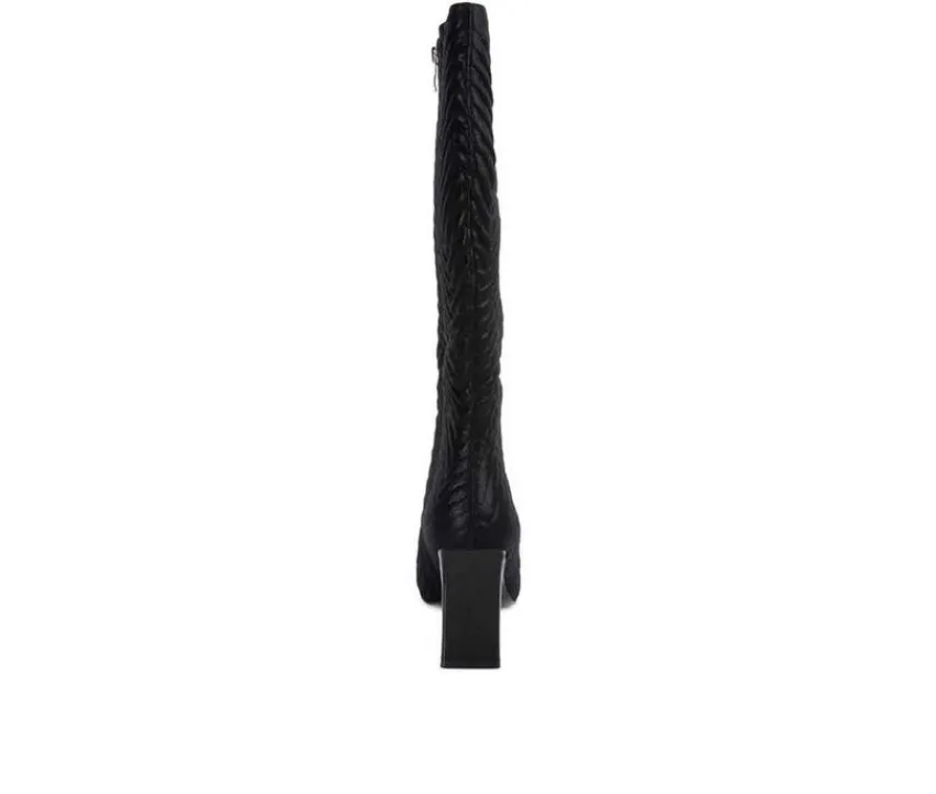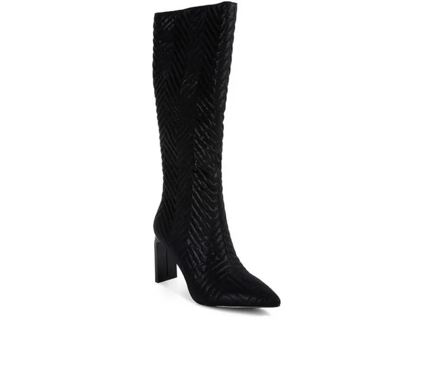 High heel boot with chevron patterned quilting is a beautiful and bright addition to your boot collection. It comes with an inside zipper opening which makes it easy to wear. The thin block heel and pointed toe make it sharp and trendy.