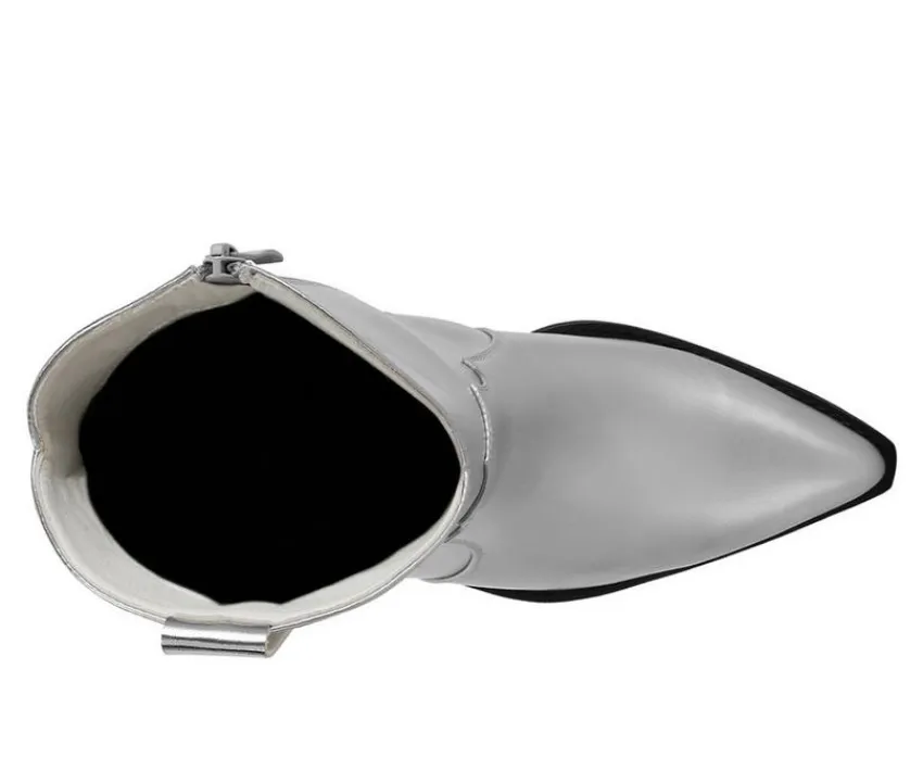 Are eye-catching metallic boots a fashion turn-on for you? With low-stacked block heels, eye-catching mock stitch detail, and light cushion insoles, these metallic boots are lustrously gleaming. They come with convenient pull tabs for easy slip-on and off for you to dance the night away.