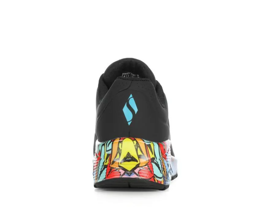 Bring retro energy and signature comfort to your step with the Women’s Skechers Street Uno Rvgd Love Sneakers. This fashion-forward design features smooth synthetic leather with bold heart accents and a chunky platform sole. The lace-up silhouette includes Skechers Air-Cooled Memory Foam® for cushioned comfort and a visible air midsole for all-day support.