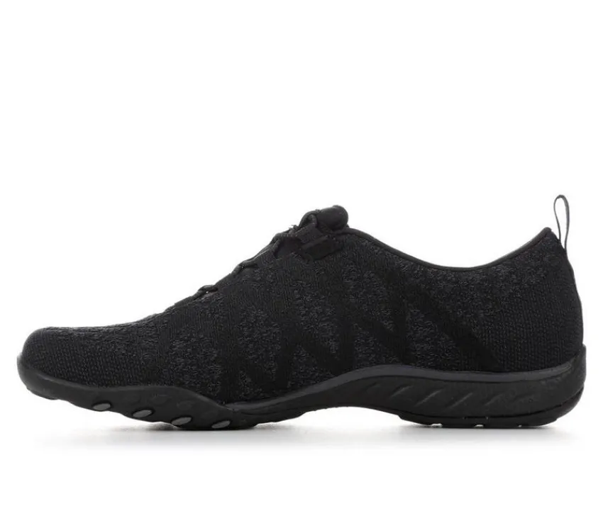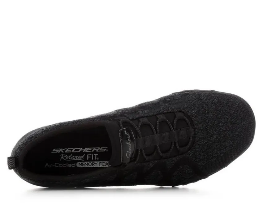 Enjoy your walks in easy-wearing comfort with Relaxed Fit: Breathe-Easy – Infi-Knity. This sporty slip-on features a Skech-Knit upper with a stretch-lace front and a cushioned Air-Cooled Memory Foam insole.