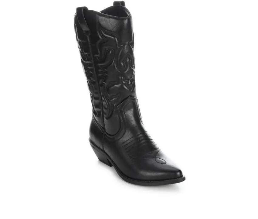 Classic Western flair gets a bold update in the Women’s Soda Rerun-S Western Boots. Featuring a faux leather upper with stitched detailing, these boots deliver cowboy-inspired style with an easy pull-on design. The pointed toe and angled block heel bring a timeless silhouette, while the durable outsole adds stability for everyday wear. Perfect for concerts, festivals, or casual outfits, these Western boots let you show off a little country charm with modern edge.