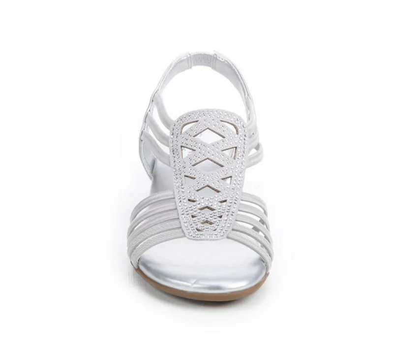 Add a little sparkle to your step with the Women’s Solanz Ellian Dress Sandals! Featuring shimmering rhinestones, elastic straps for a comfy fit, and a chic slingback design, these sandals are perfect for any occasion. From day to night, they’ll elevate your look while keeping you comfortable and stylish.