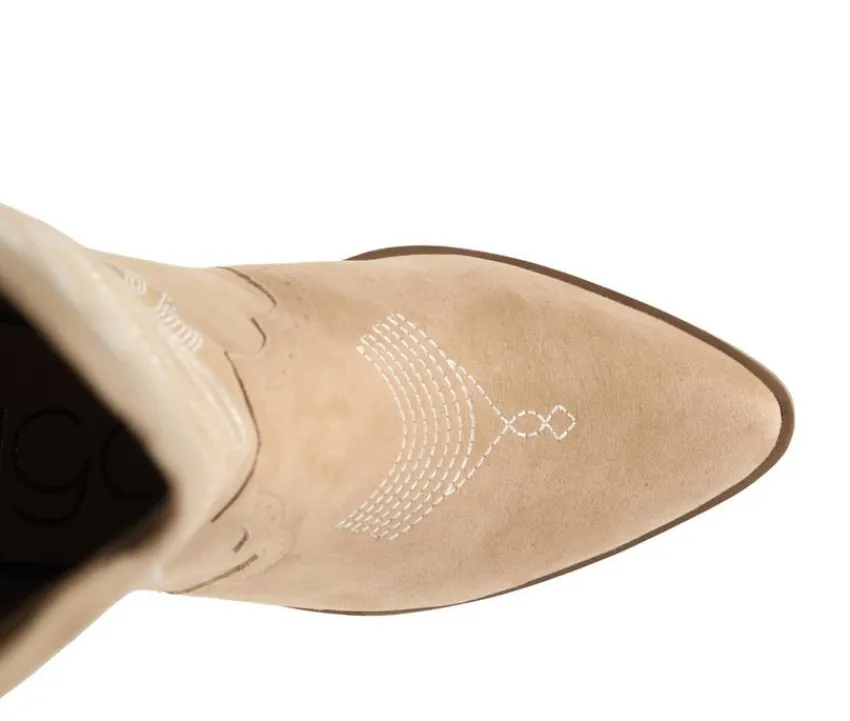 Embrace the timeless charm of the West with the sleek design of the Kammy boots by Sugar. Featuring classic Western elements such as pointed toes, pull-on tabs, and decorative stitching, these boots capture the essence of cowboy-inspired fashion.