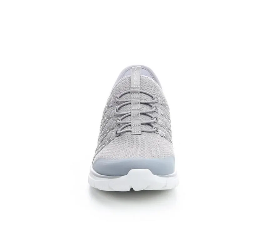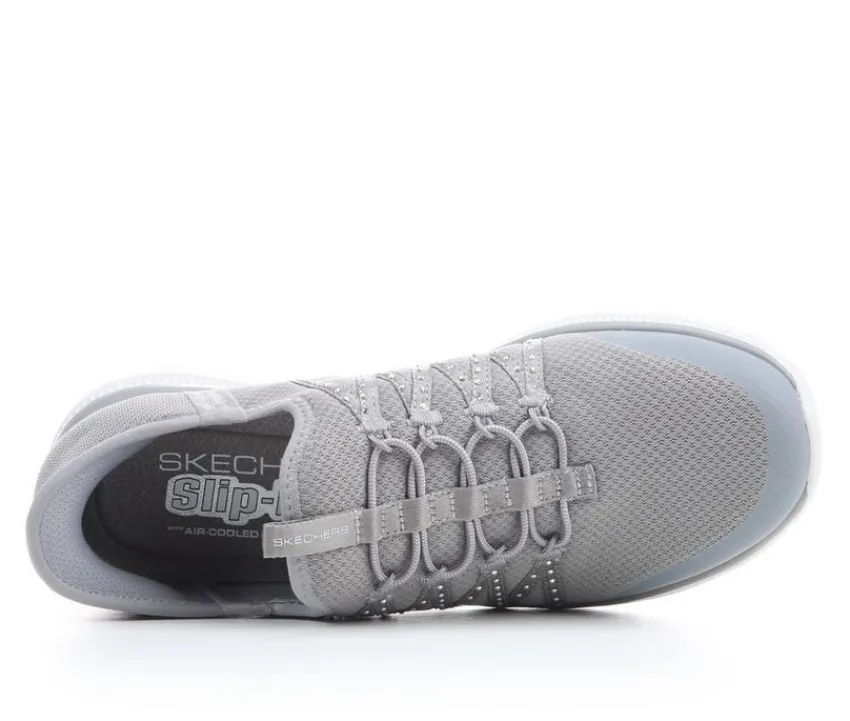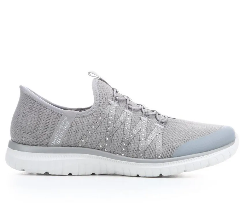 The Skechers Virtue Stunner Slip-In is built for effortless comfort and standout style. Designed with a breathable mesh upper accented by sparkling rhinestones, it blends sporty function with a touch of glam. The hands-free Slip-Ins™ heel lets you step in easily without bending down, while the Skechers Memory Foam™ cushioned insole supports long days on your feet. A lightweight midsole and flexible rubber traction outsole complete this versatile sneaker for everyday wear.