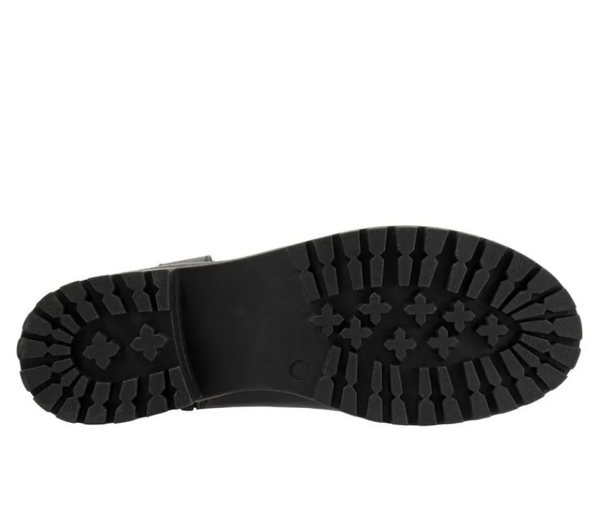 Rugged style meets everyday comfort in these classic mid-calf harness boots. Crafted with a durable synthetic upper and accented by metal ring hardware, they deliver a timeless, moto-inspired look. The sturdy block heel and lug outsole provide reliable traction, while the cushioned insole ensures comfort throughout the day. Easy pull tabs make them simple to slip on, perfect for casual or outdoor wear.