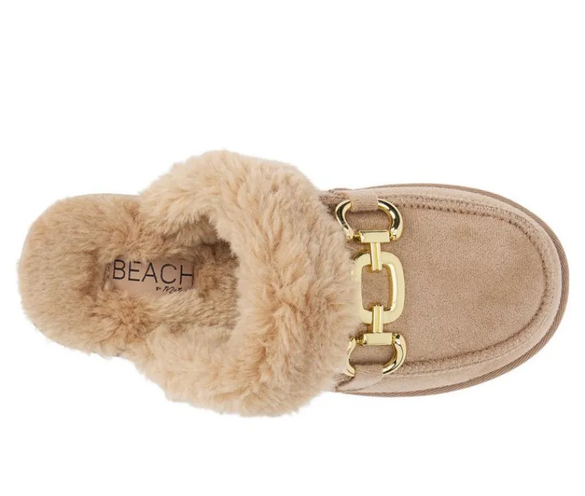 Stay cozy and chic with these lounge-ready vegan mules. Designed with a faux-fur lining for softness and warmth, they’re accented by a decorative ornament detail for added style. The slip-on construction makes them easy to wear indoors or out, keeping your look casual yet polished.