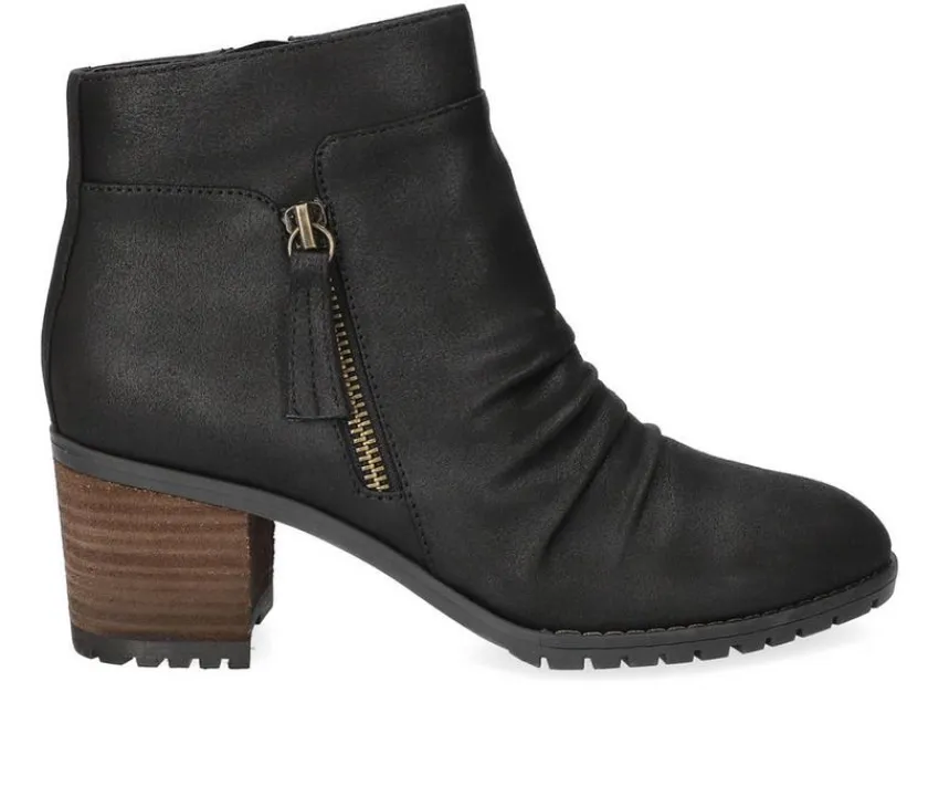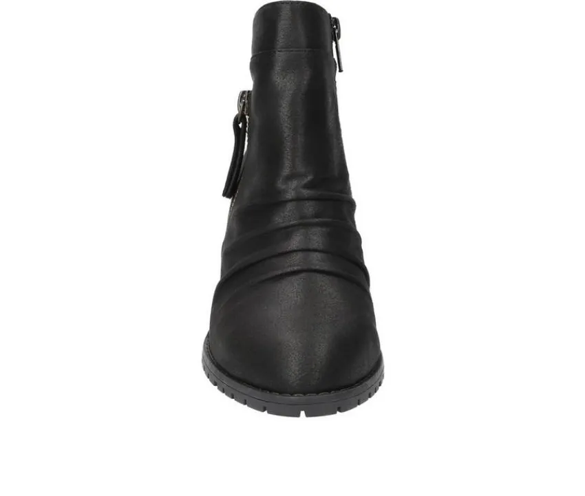 Effortless casual style defines the Janita bootie. This mini-lug heel boot features soft pleated details and a convenient side zipper. A padded heel-to-toe insole ensures comfortable wear all day long. Finished with a flexible outsole that supports every step while maintaining a polished look.