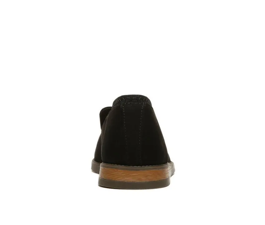 A work-ready, loafer-inspired flat that goes with everything. SUSTAINABLY CRAFTED: Linings and topcloth made from recycled plastic bottles, recycled toe box and heel counter. MATERIALS: Faux leather or ReFiber – Microfiber made from recycled plastic bottles. FIT: Slip-on fit with comfort collar for easy on/off. SUSTAINABLE COMFORT: Anti-microbial, anti-odor Susterra® foam insole crafted from 11% bio-based materials with soft and lightweight cushioning, built-in arch support, and a molded heel cup. MOVEMENT: Lightweight, flexible construction moves with you. STYLE: Soft and flexible comfort flat with a low 3/4 inch wedge heel. CONSCIOUSLY PACKAGED: This style is shipped in a box made with recyclable materials & soy-based inks. Head to the office or wherever life takes you in this comfy, soft, and flexible flat.