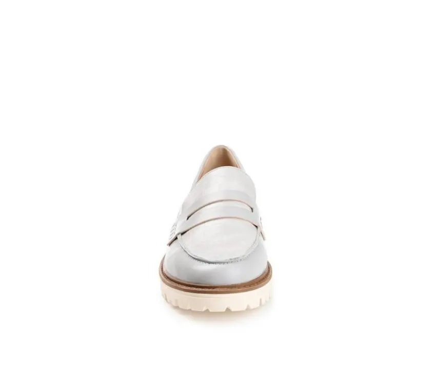 Look and feel your best in a sleek yet comfortable style. The Kenly penny loafer by Journee features a 4 mm Tru Comfort Foam™ footbed, soft vegan leather, and notches at the topline that make your every step feel like you’re walking on clouds. A chic croc textured accent at the vamp adds to the classic styling, and a white chunky block heel adds a contemporary twist. At Journee, our flat styles will have you looking just as professional as the boss at work to having the cutest shoes when you go out for the night.