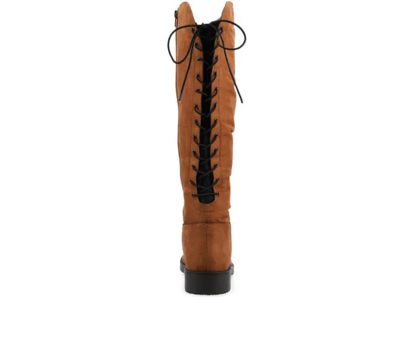 Introducing the Mirinda boot by Journee Collection. Walk in style and comfort with the 4 mm Tru Comfort Foam™ insole that feels like walking on clouds. These boots are made from vegan leather, offering fashion and style. They are made with a stretch and back lace-up design, inside zip entry, block heel, and round toe. Step into your day with the ideal blend of fashion and comfort with the Mirinda boots.