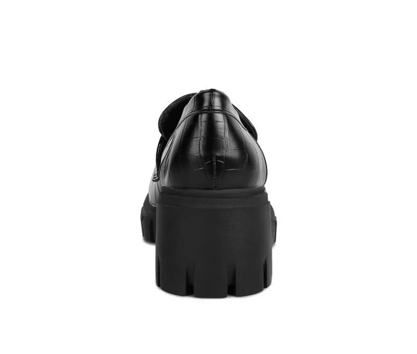 The chunky loafers are fun, quirky, and stylish with the chunky lug soles and platform detail. The croc print looks fashionable while the soft cushioned insoles cut strain. The chunky loafers are a must-have this season.